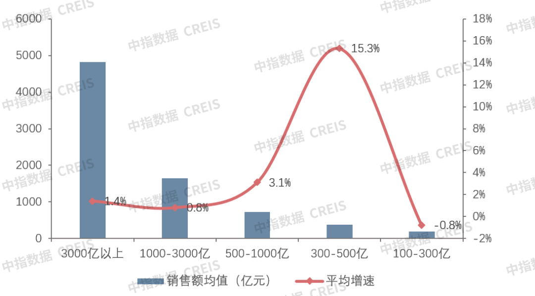 百亿阵营分化加剧,300-500亿阵营企业增速最快